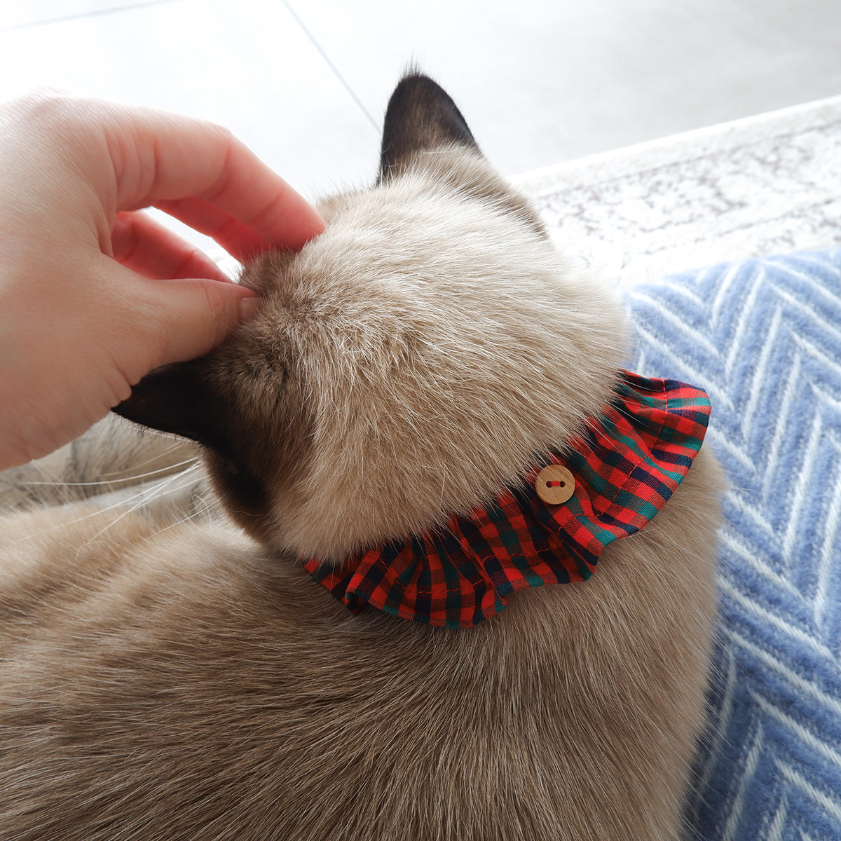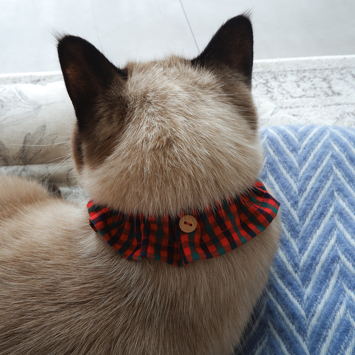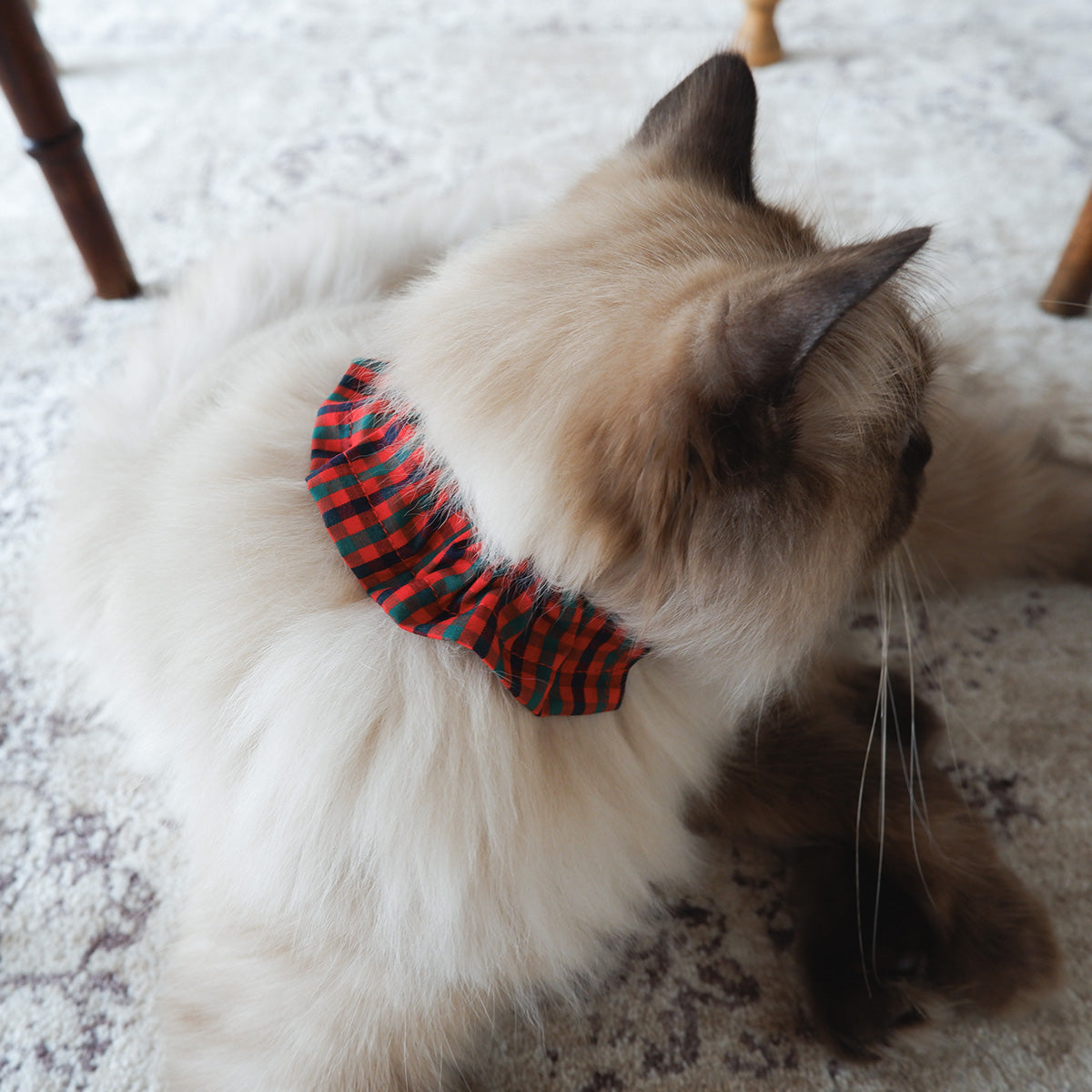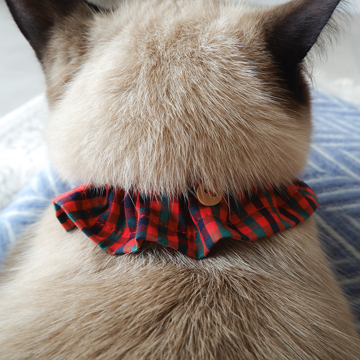 猫にやさしいコットン首輪/フリル【Tartan Red】