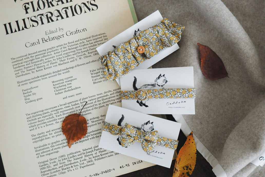 猫にやさしいコットン首輪/リボン【Liberty/Wimbrell Posy】