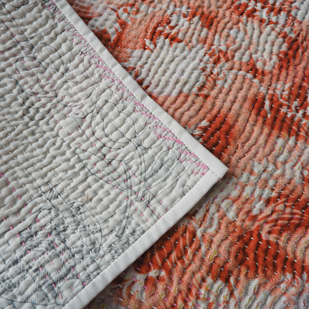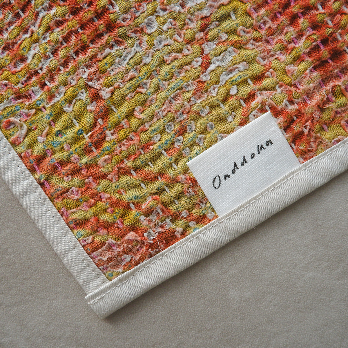 옛 천을 몇 장이나 거듭, 한 바늘 한 바늘 손 자수로 연결한 칸타 퀼트는, 다양한 색의 실이나 낡은 천의 표정의 풍부함 뿐만이 아니라, 생활의 천으로서도 튼튼하고 촉감의 좋은 점이 매력입니다.