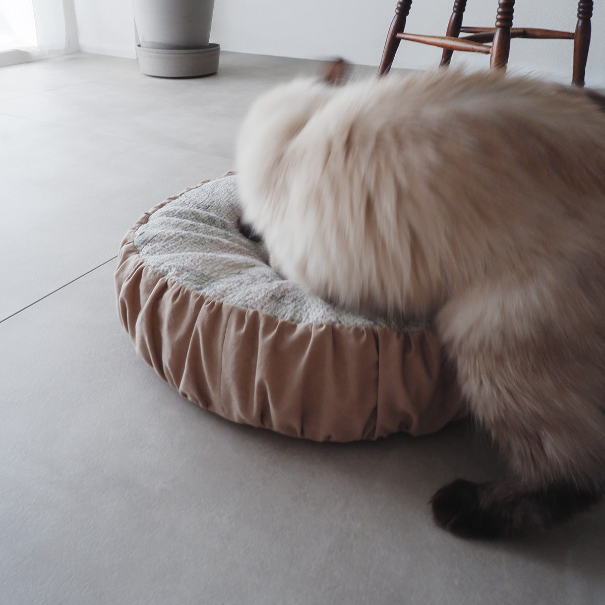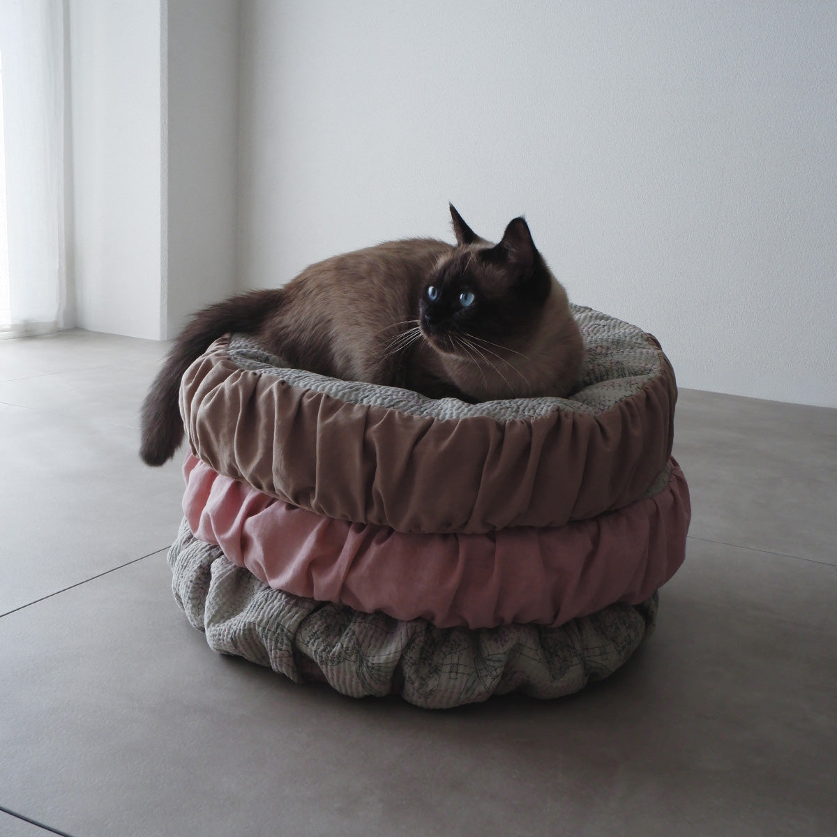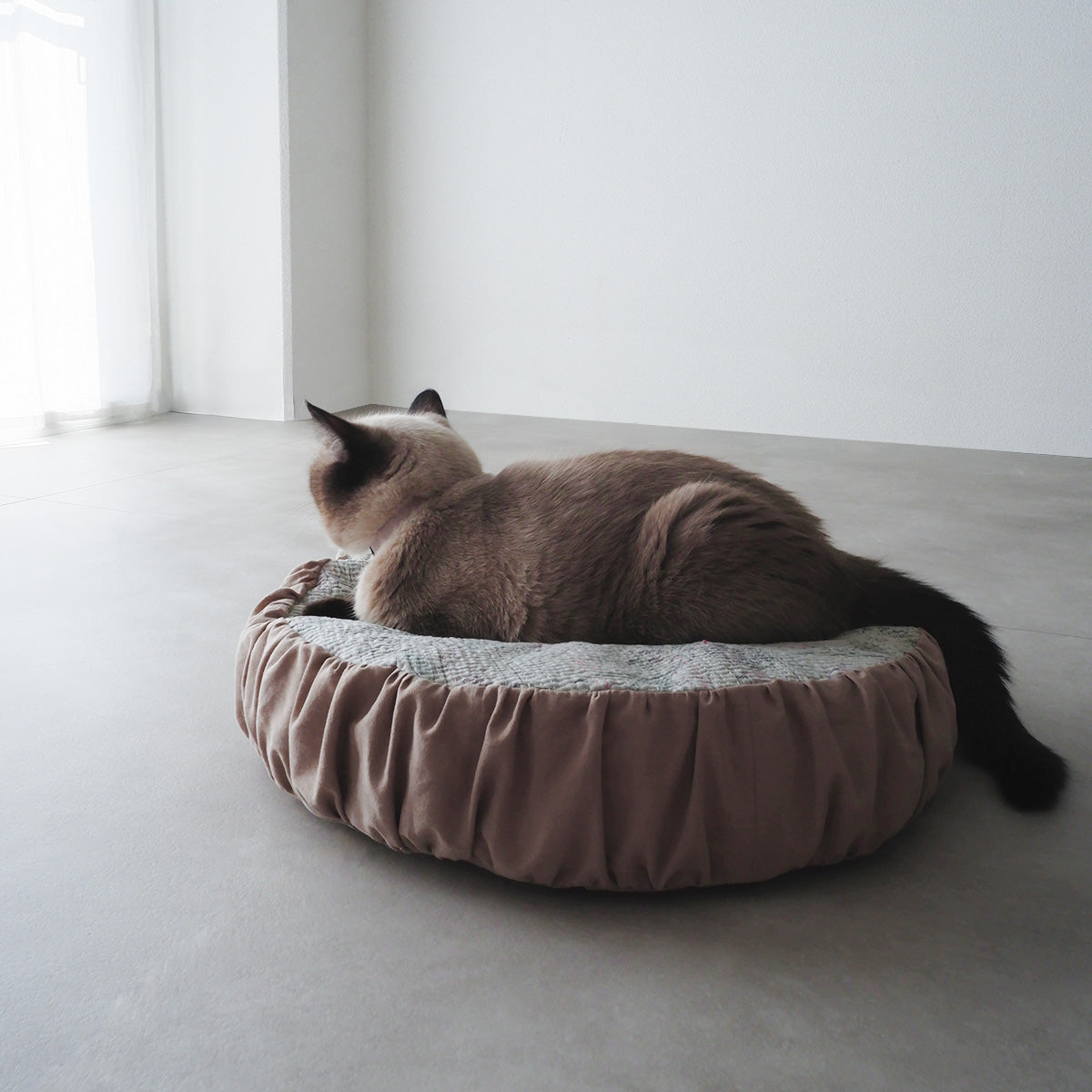 양면에 다른 패브릭을 조합한, 1년 중심지 잘 사용할 수 있는 고양이 침대입니다.