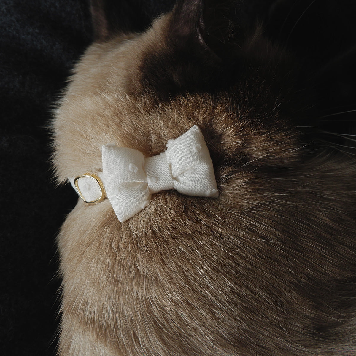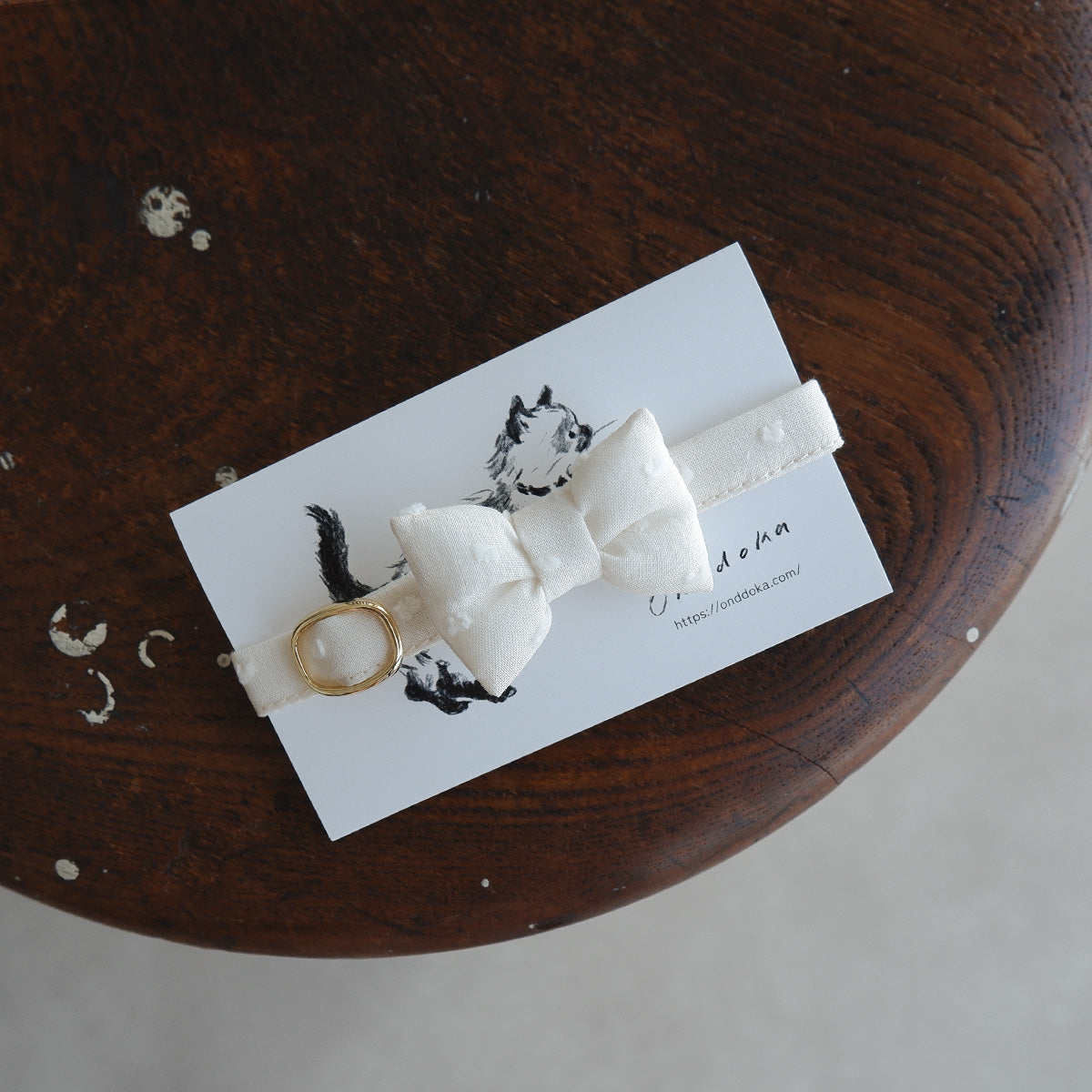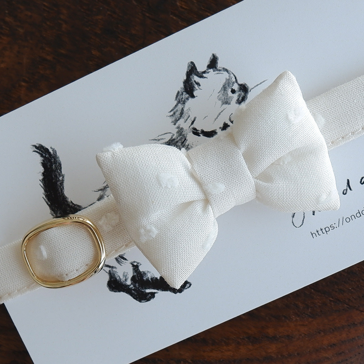 猫にやさしいコットン首輪/リボン【ドットミニヨン/キナリ】