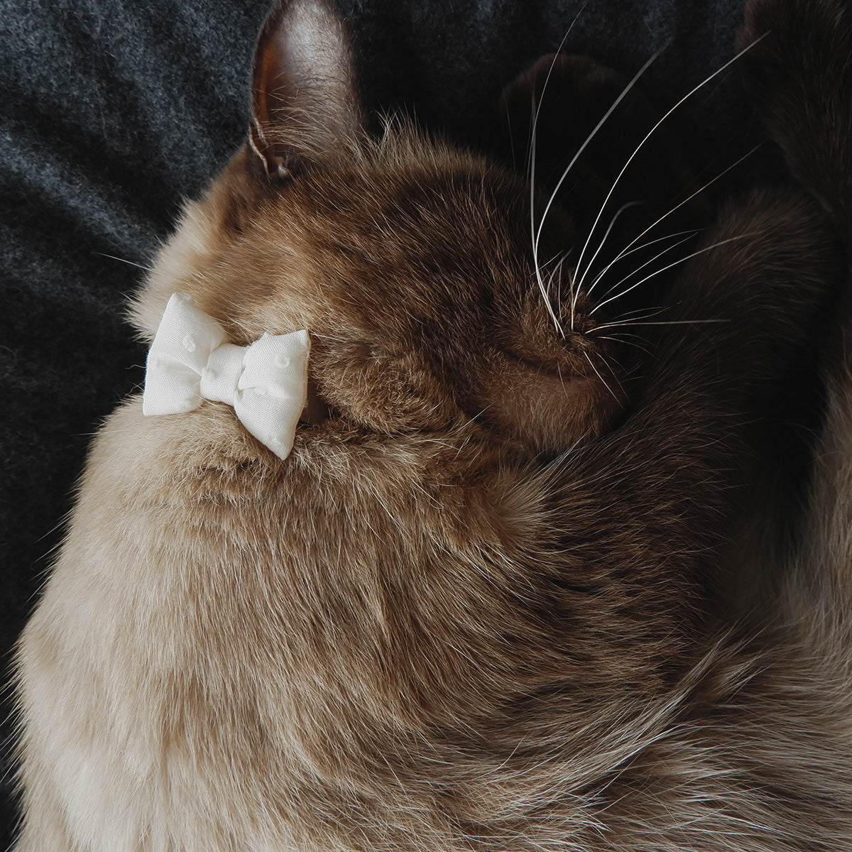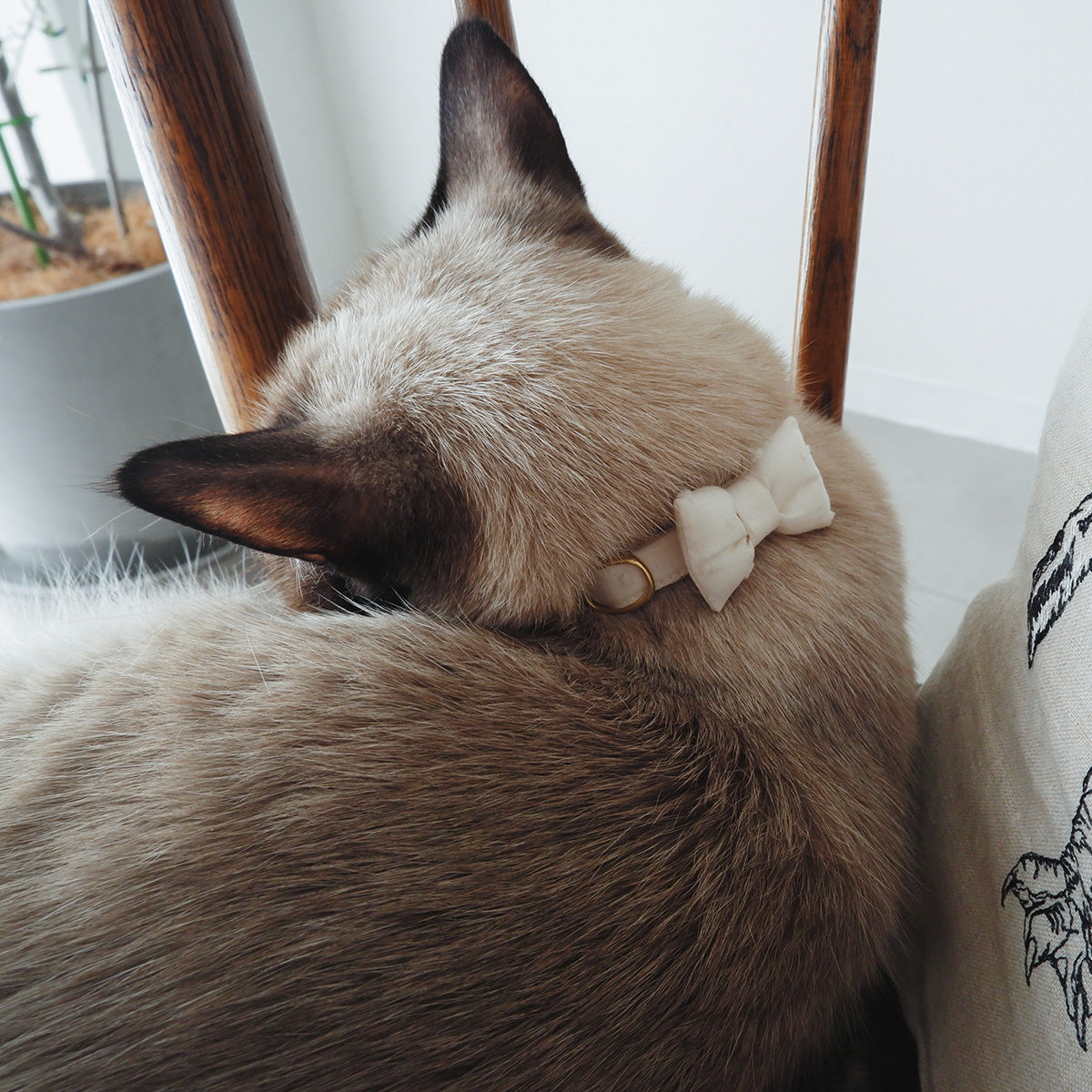 「猫にやさしいコットン首輪」は、通気性や肌触りの良い素材を厳選し、猫にとってストレスにならないことを大切に設計されています。皮膚に当たるベルト部分は、脱毛の原因にならない柔らかい仕様で、リボンなどの装飾も控えめです。