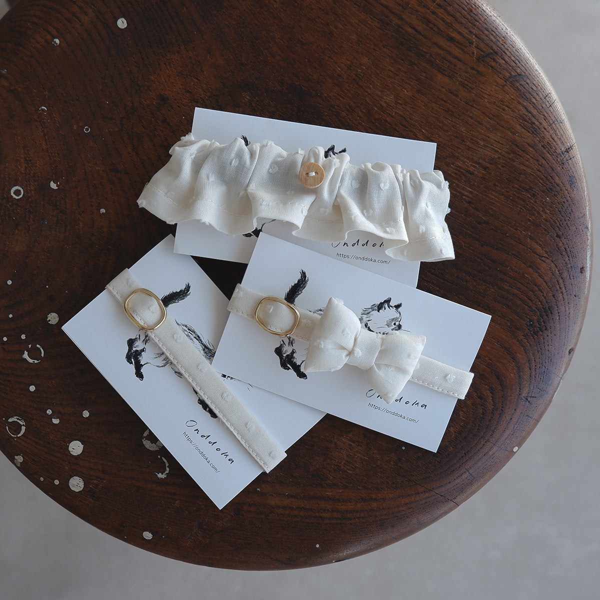 一点一点丁寧な手仕事でつくる猫用首輪。