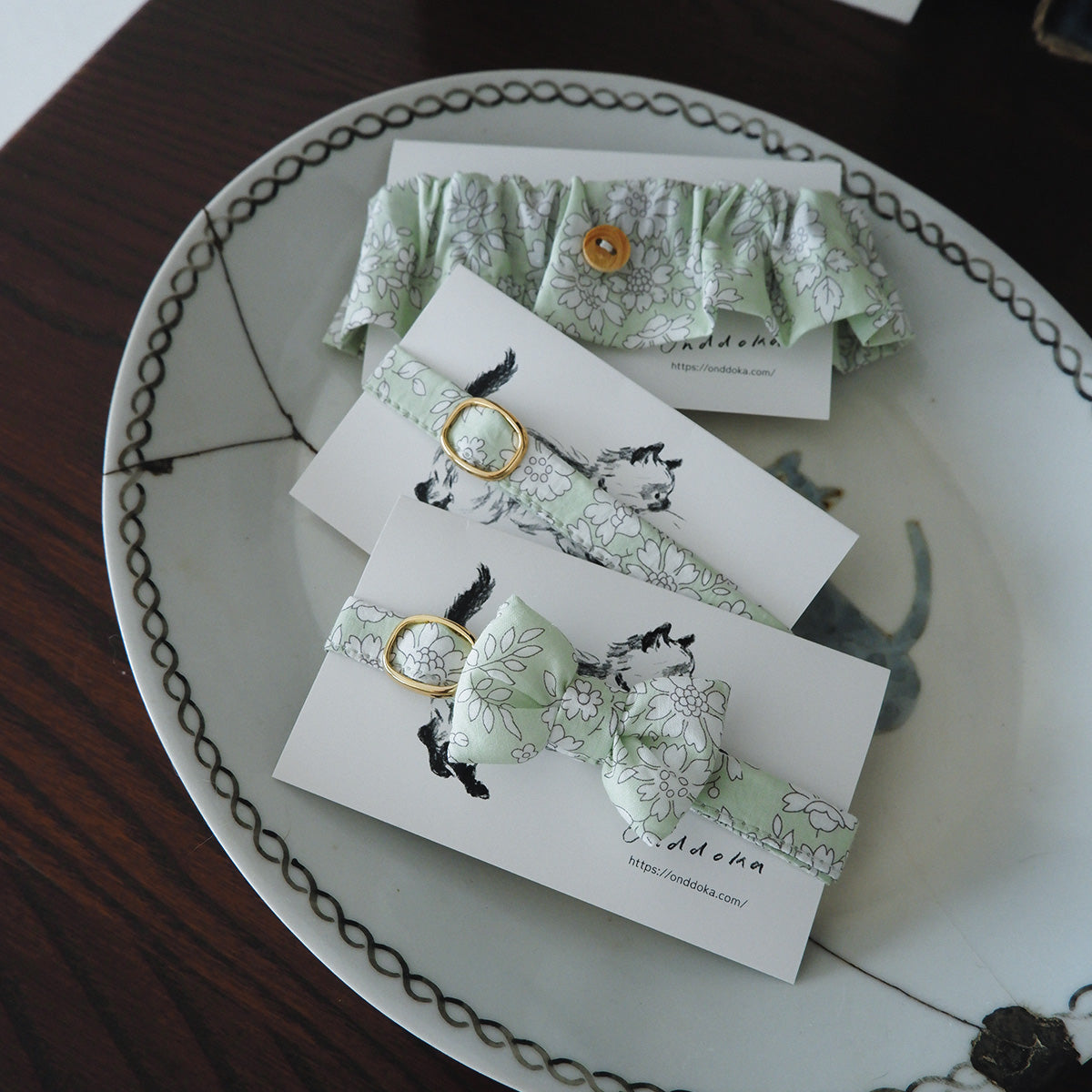 一点一点丁寧な手仕事でつくる猫用首輪。