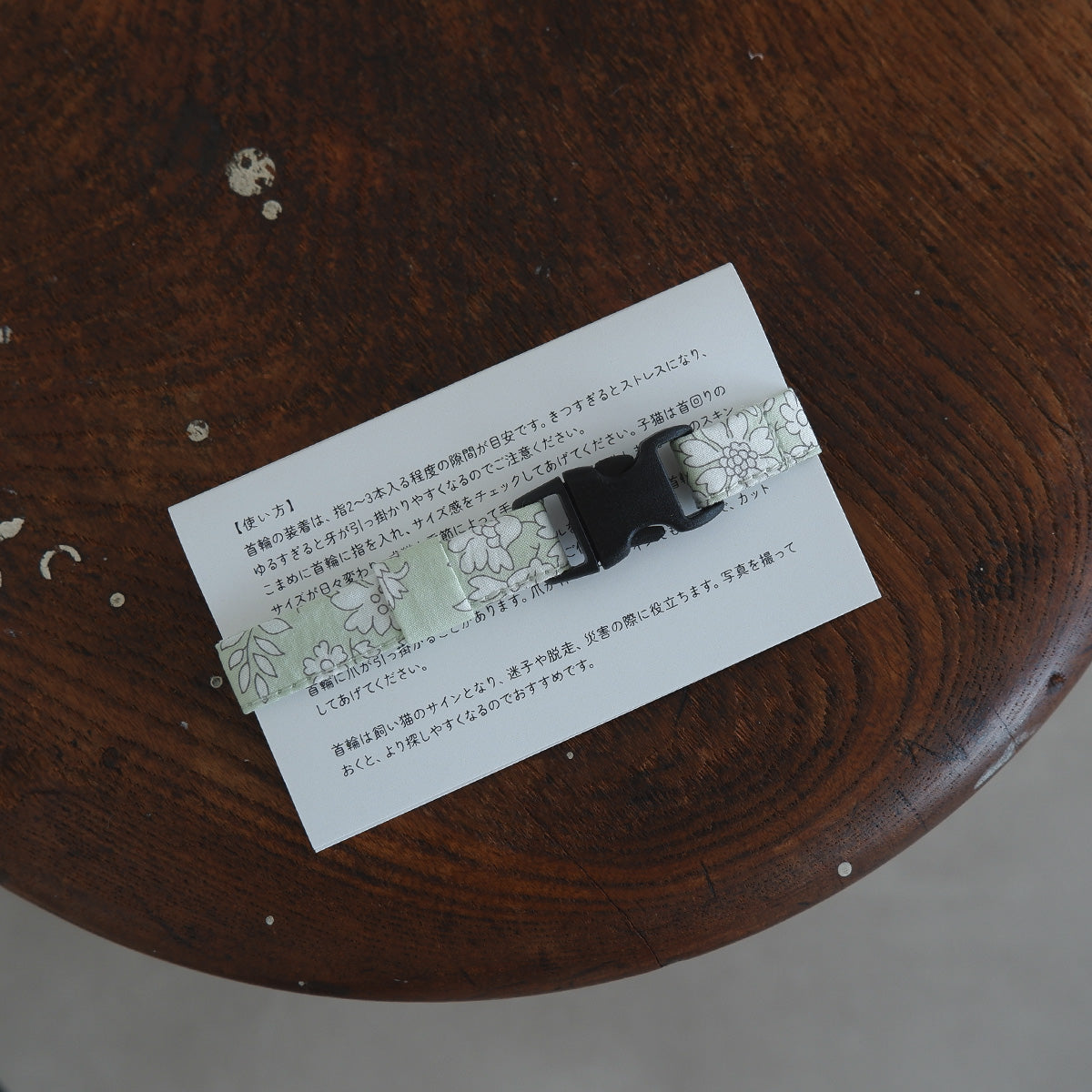 強い力がかかると安全に外れるセーフティバックルを使用した室内用の首輪です。軽量で やわらかい作りなので、散歩や係留用としてはご使用頂けません。 首輪に爪が引っ掛かることがあります。爪が伸びているサインでもあるので、カットし てあげてください。
