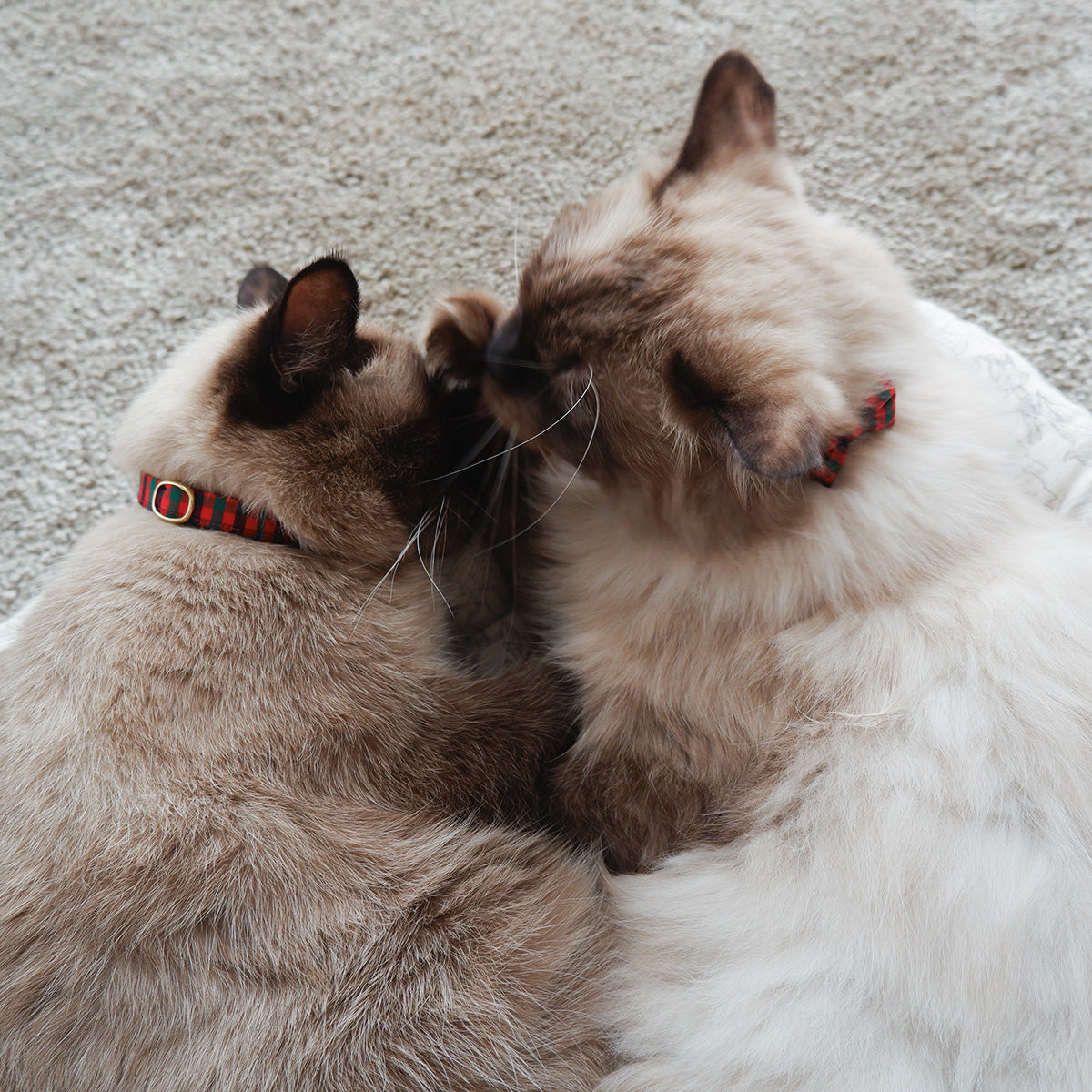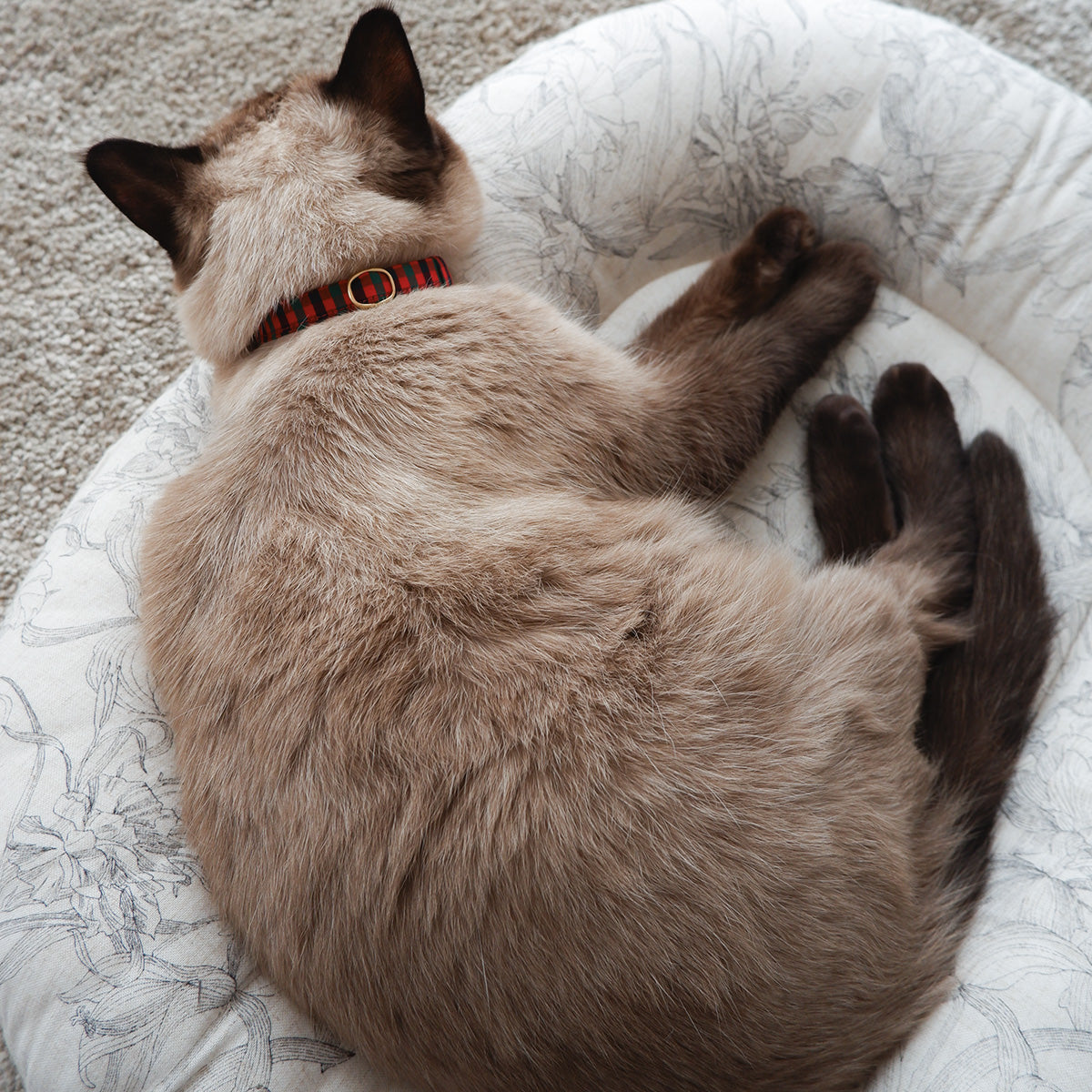 「猫にやさしいコットン首輪」は、通気性や肌触りの良い素材を厳選し、猫にとってストレスにならないことを大切に設計されています。皮膚に当たるベルト部分は、脱毛の原因にならない柔らかい仕様で、リボンなどの装飾も控えめです。