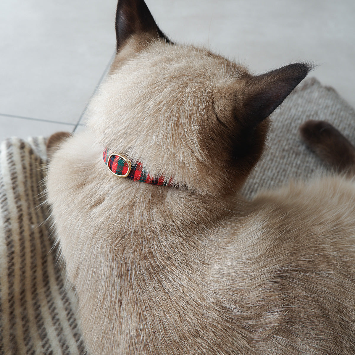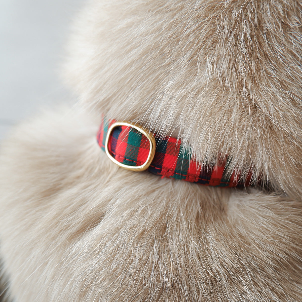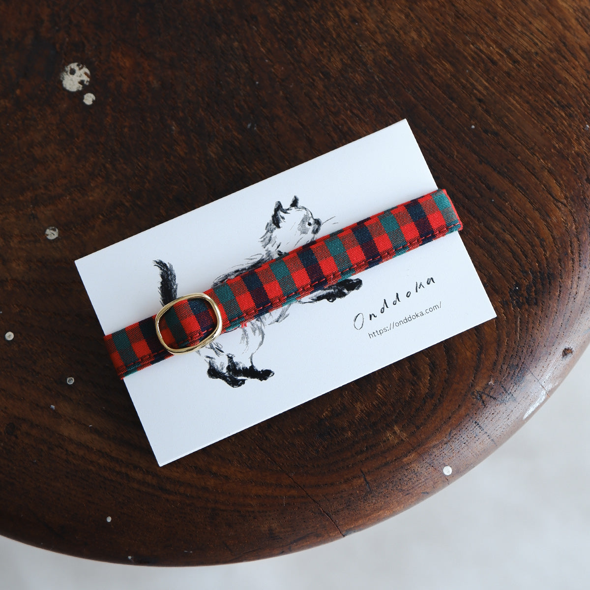 猫にやさしいコットン首輪/リボンなし【Tartan Red】