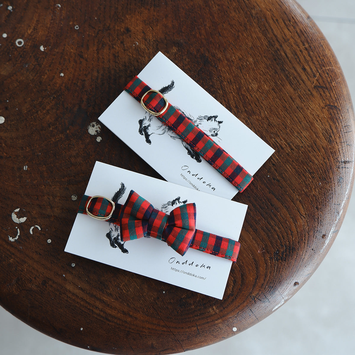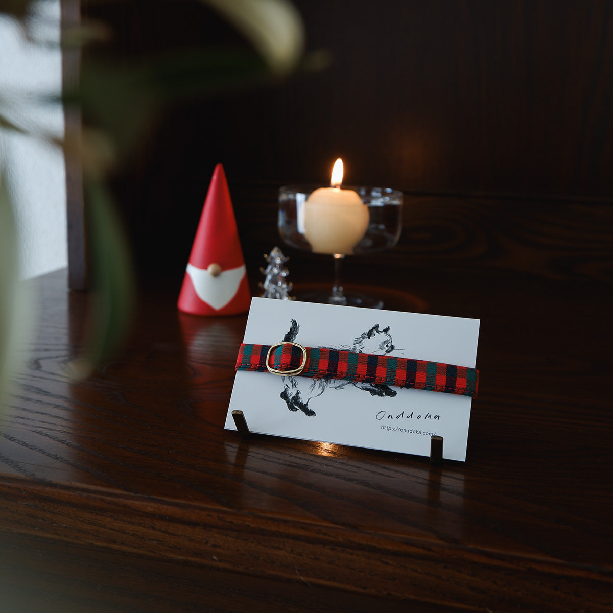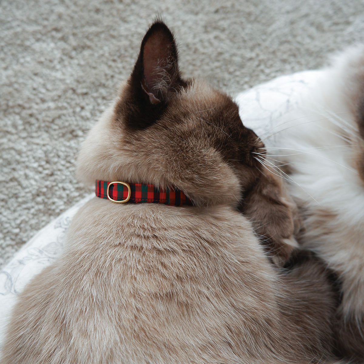 猫にやさしいコットン首輪/リボンなし【Tartan Red】