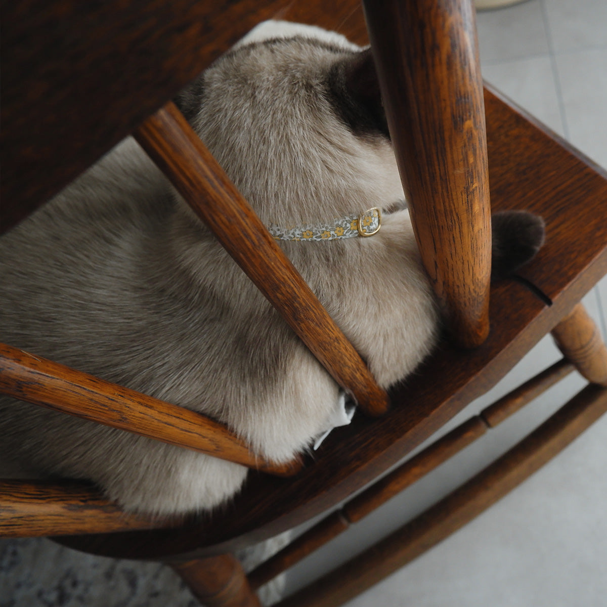 「猫にやさしいコットン首輪」は、通気性や肌触りの良い素材を厳選し、猫にとってストレスにならないことを大切に設計されています。皮膚に当たるベルト部分は、脱毛の原因にならない柔らかい仕様で、リボンなどの装飾も控えめです。