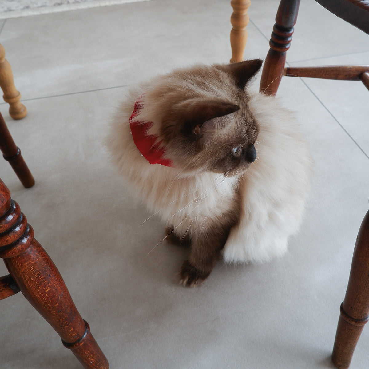 「猫にやさしいコットン首輪」は、通気性や肌触りの良い素材を厳選し、猫にとってストレスにならないことを大切に設計されています。皮膚に当たるベルト部分は、脱毛の原因にならない柔らかい仕様で、装飾も控えめです。