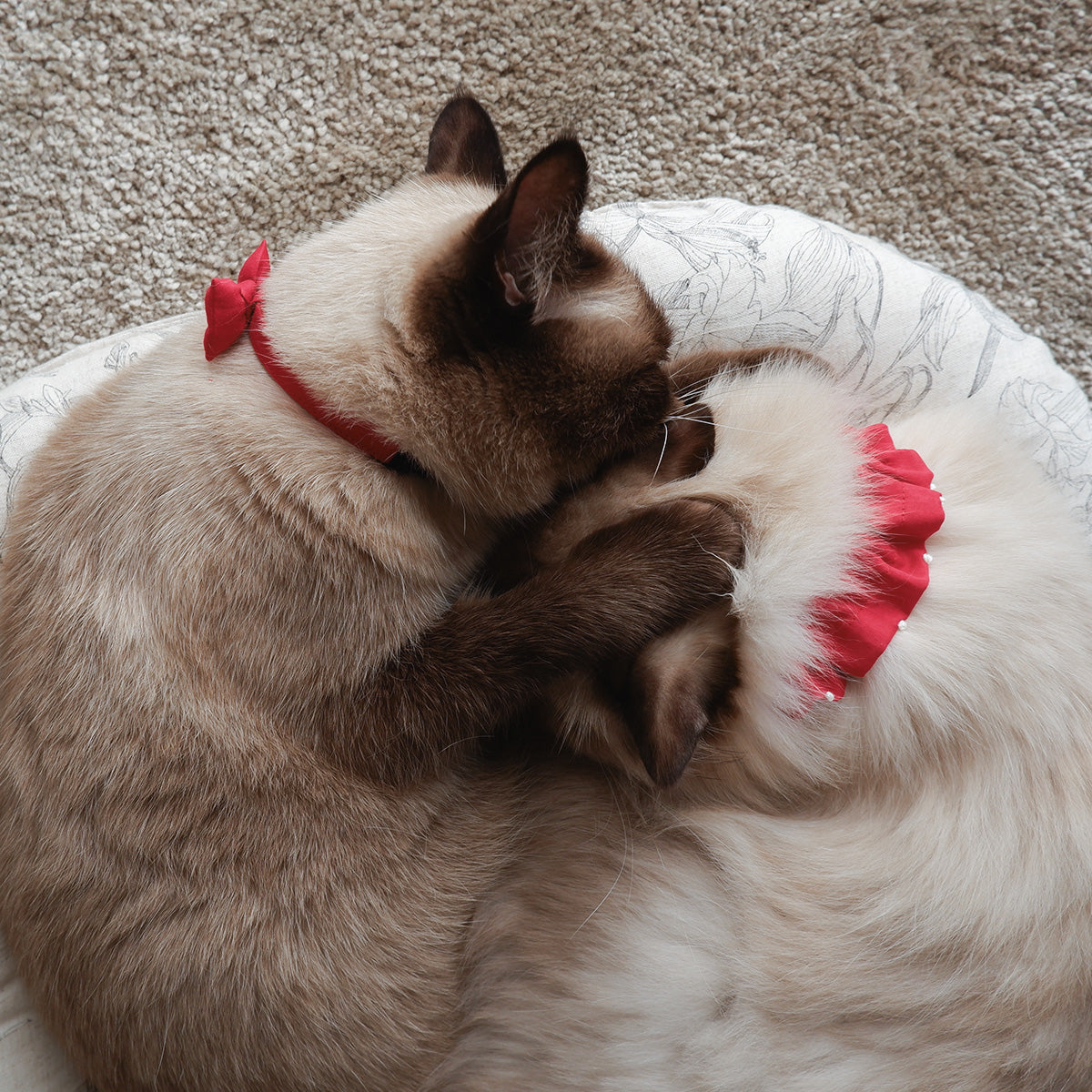 こまめに首輪に指を入れ、サイズ感をチェックしてあげてください。子猫は首回りのサ イズが日々変わり、成猫も季節によって毛のボリュームが変化します。毎日のスキンシップに取り入れてあげると安心です。