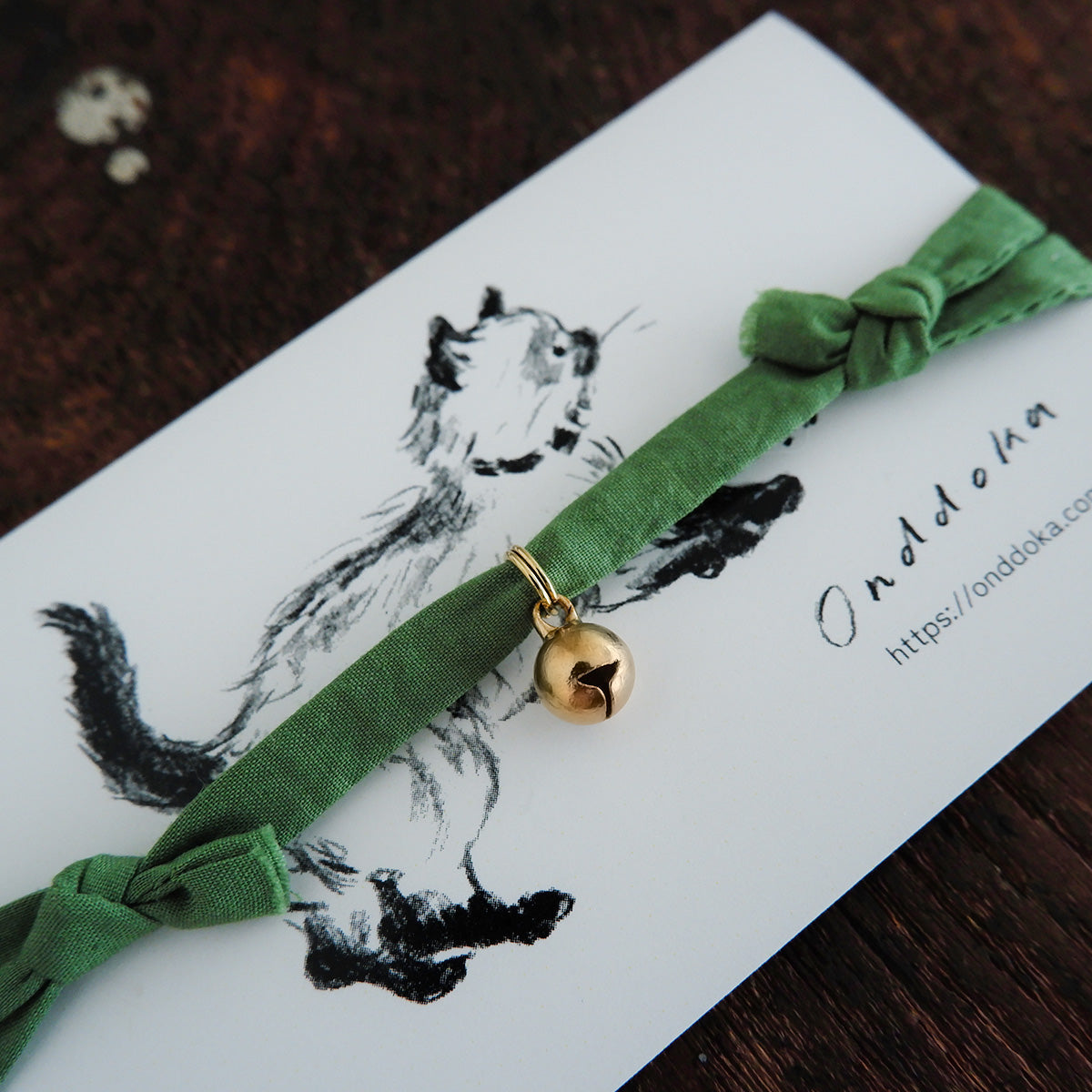 猫にやさしいコットン首輪/チョーカー×ちいさく鳴る鈴【Tea Green】