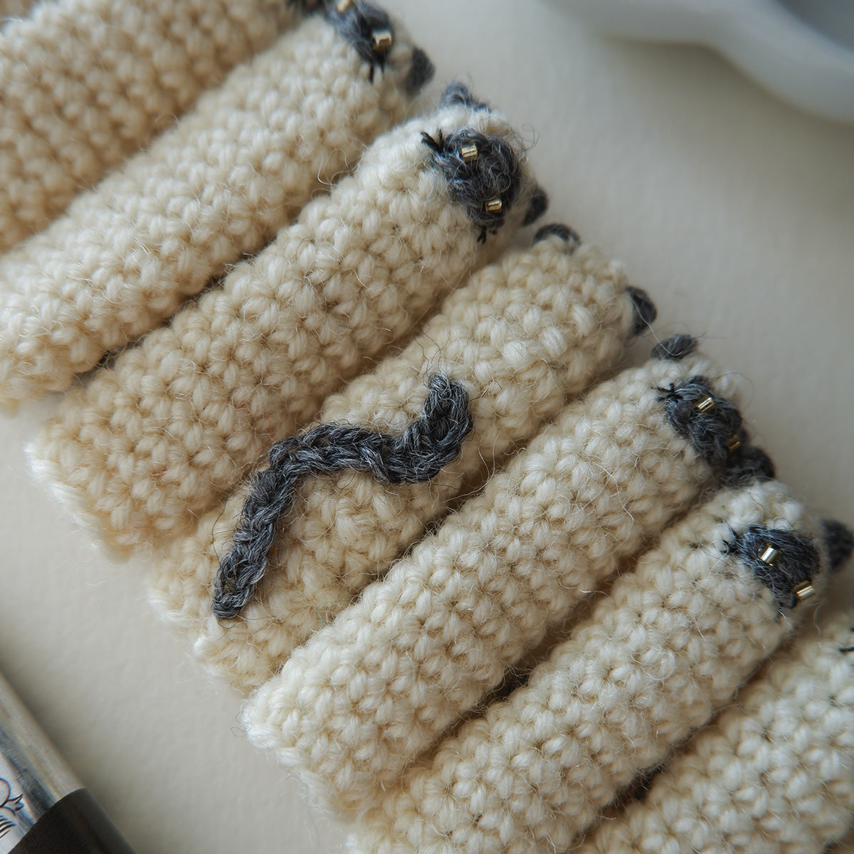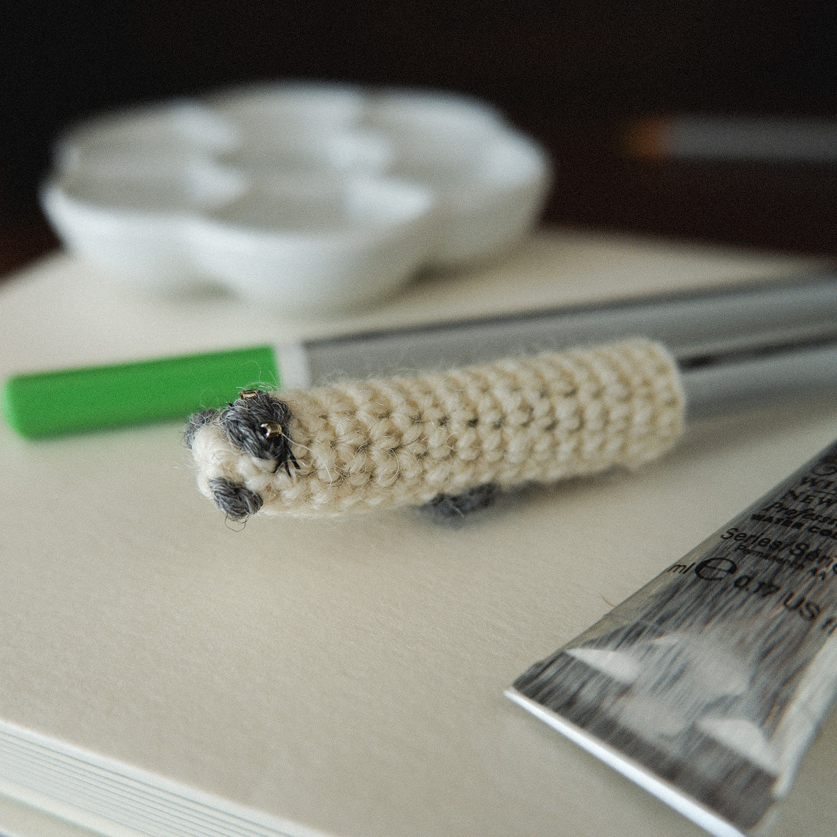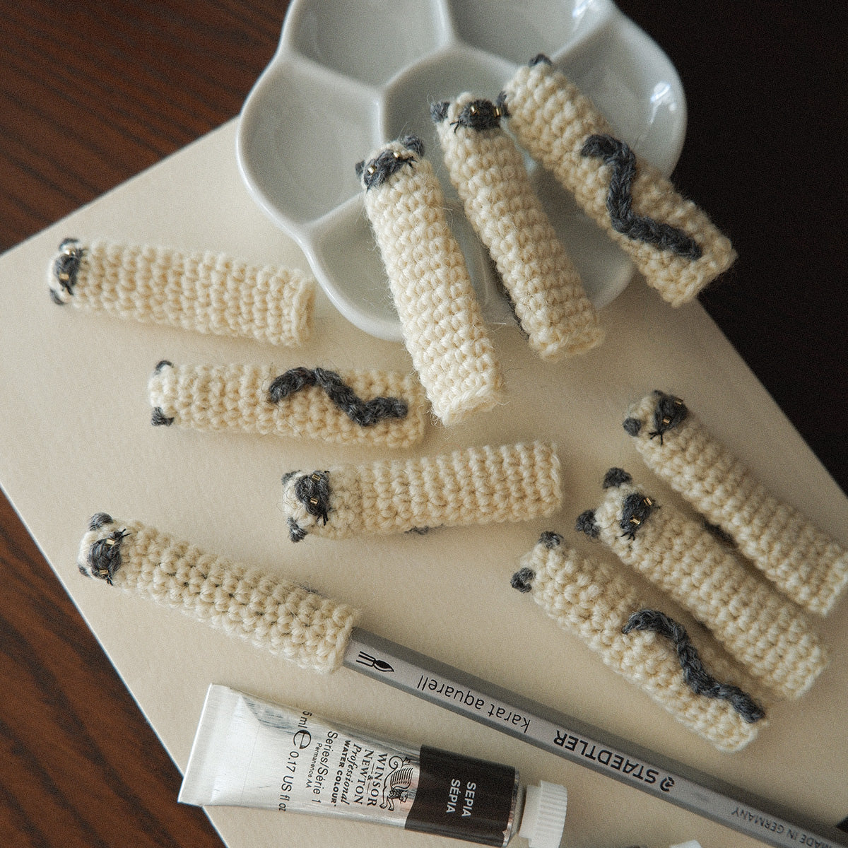 かぎ針編み作家のaacoさんがかぎ針編みで丁寧に編みあげる「 シャム猫の鉛筆キャップ」。