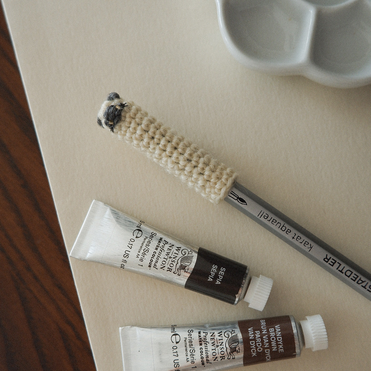 鉛筆キャップですが、他にもApple Pencilやネイル用の筆、かぎ針などいろいろなものにお使いいただけます。